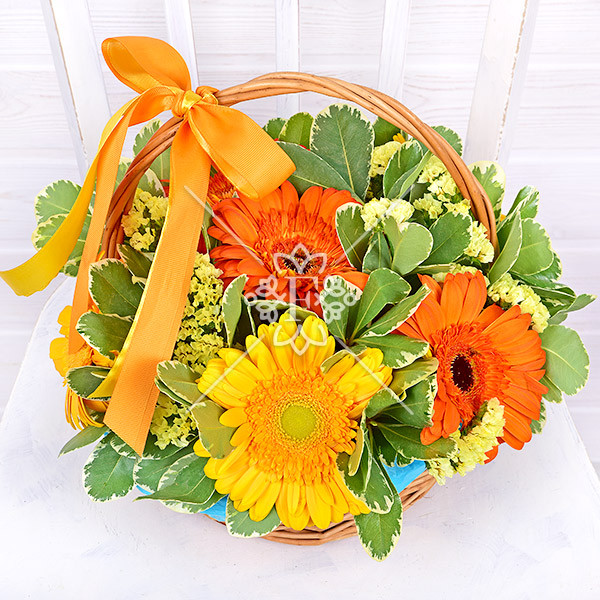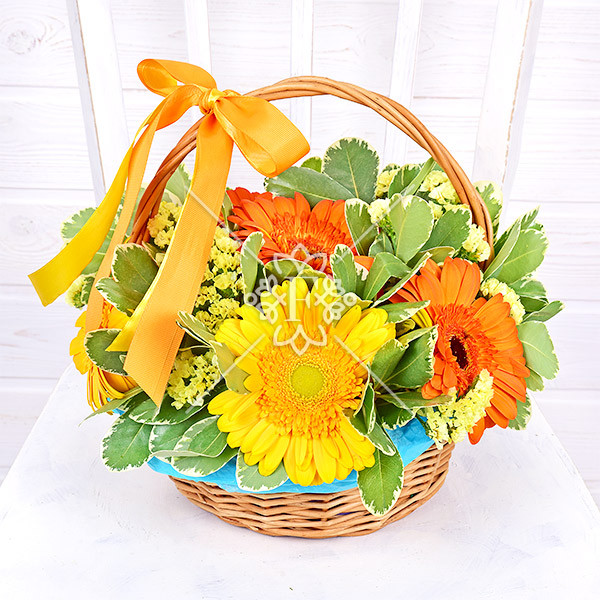 Оранжевое лето – корзина с герберами